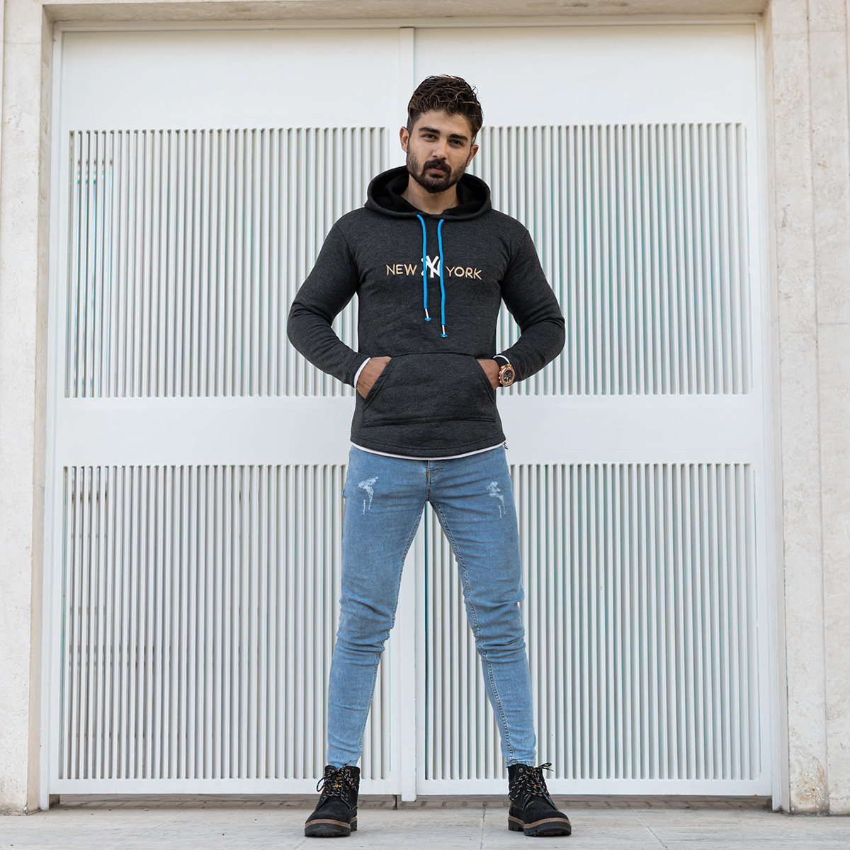 هودي مردانه مدل new york رنگ طوسي