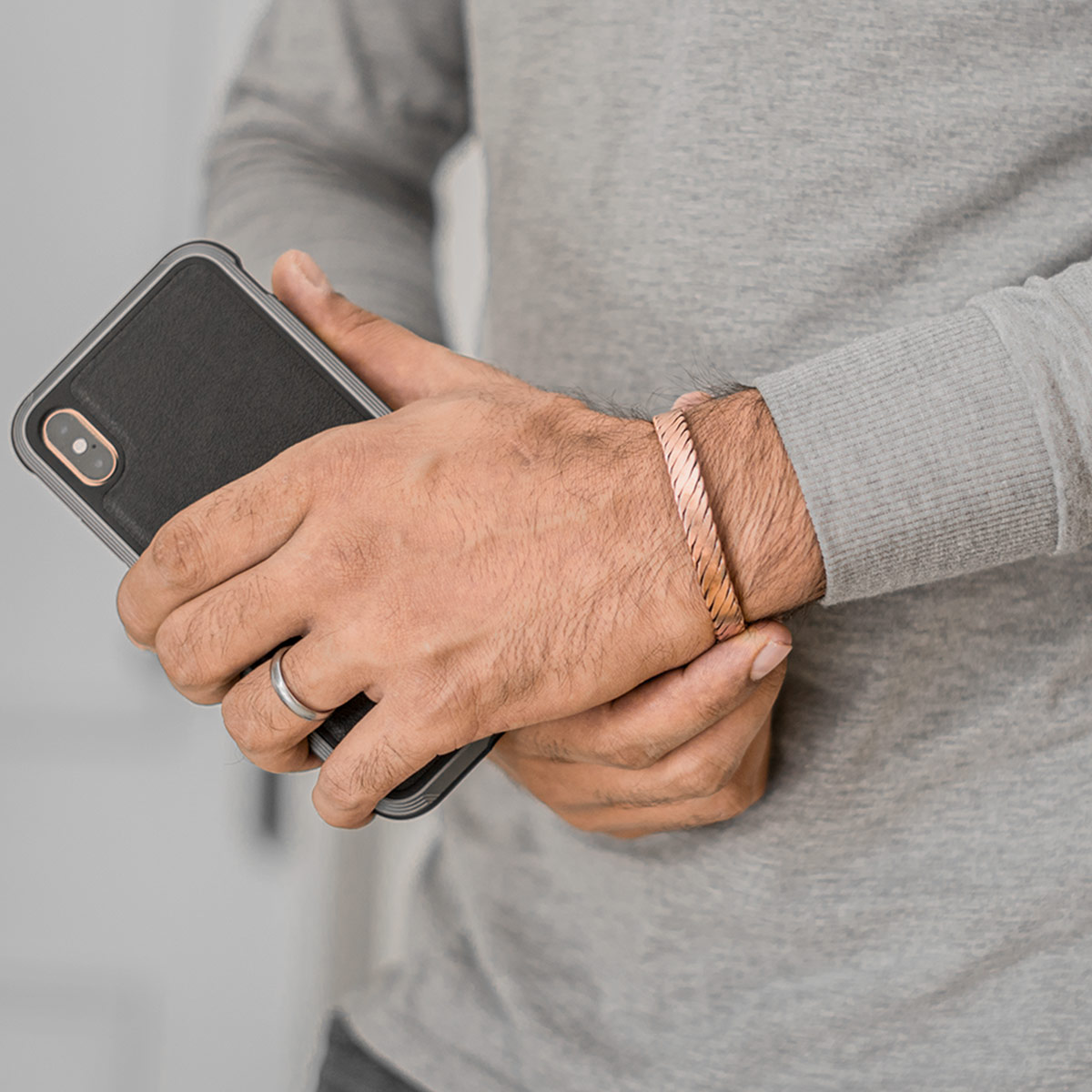 مس یک عنصر حیاتی است که در گیاهان و بدن انسان یافت می شود. استفاده از این فلز به عنوان زیور آلات تاثیرات مثبتی روی بدن خواهد داشت. این دستبند دارای طرا حی زیبا و منحصر به فرد است علاوه بر این مس بسیار بادوام بوده و تا مدت ها میتوانید از آن استفاده کنید.